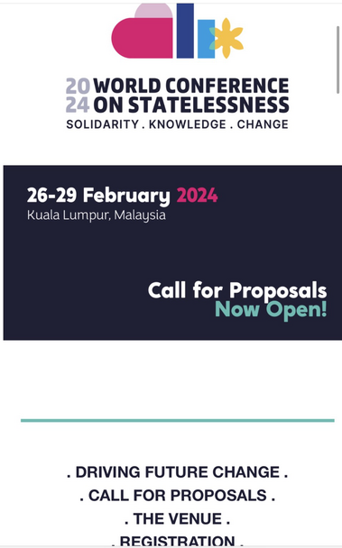 Call for Papers. The next World Conference on Statelessness will be held from 26-29 February 2024 at Taylor’s University in Kuala Lumpur, Malaysia. https://files.institutesi.org/Submission_form_proposals_example.pdf?mc_cid=bfb867e217&mc_eid=7dcfdd755b #callforpapers #cfp #mastodonresearcher #academic