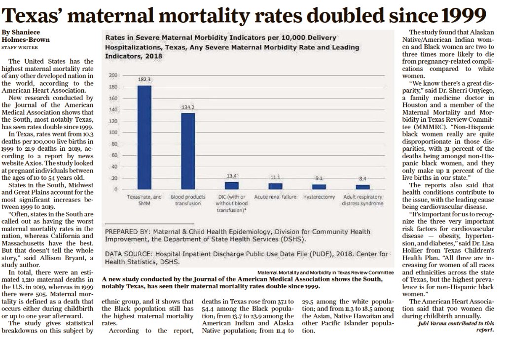#Texas #MaternalMortality Texas’ maternal mortality rates doubled since 1999 https://pbs.twimg.com/media/F1zvG2OXsAIdYhB?format=jpg&name=medium
