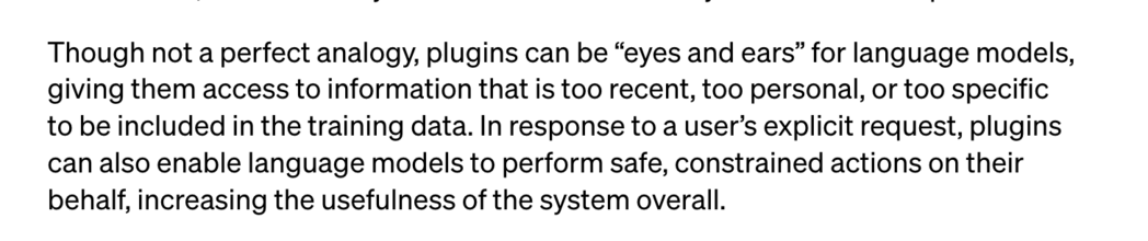 Reading about #ChatGPT plug-ins and wondering why this is framed as plug-ins for #ChatGPT (giving it "capabilities") rather than #ChatGPT as a plug-in to provide a conversational front-end to other services.