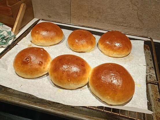 Med glatt övermod började jag dagen med att tänka ''Briochebröd! Det har jag aldrig gjort förut! Nu kör vi!". En youtubeguide och några timmar senare står man här med ett gäng superfina hamburgerbröd.