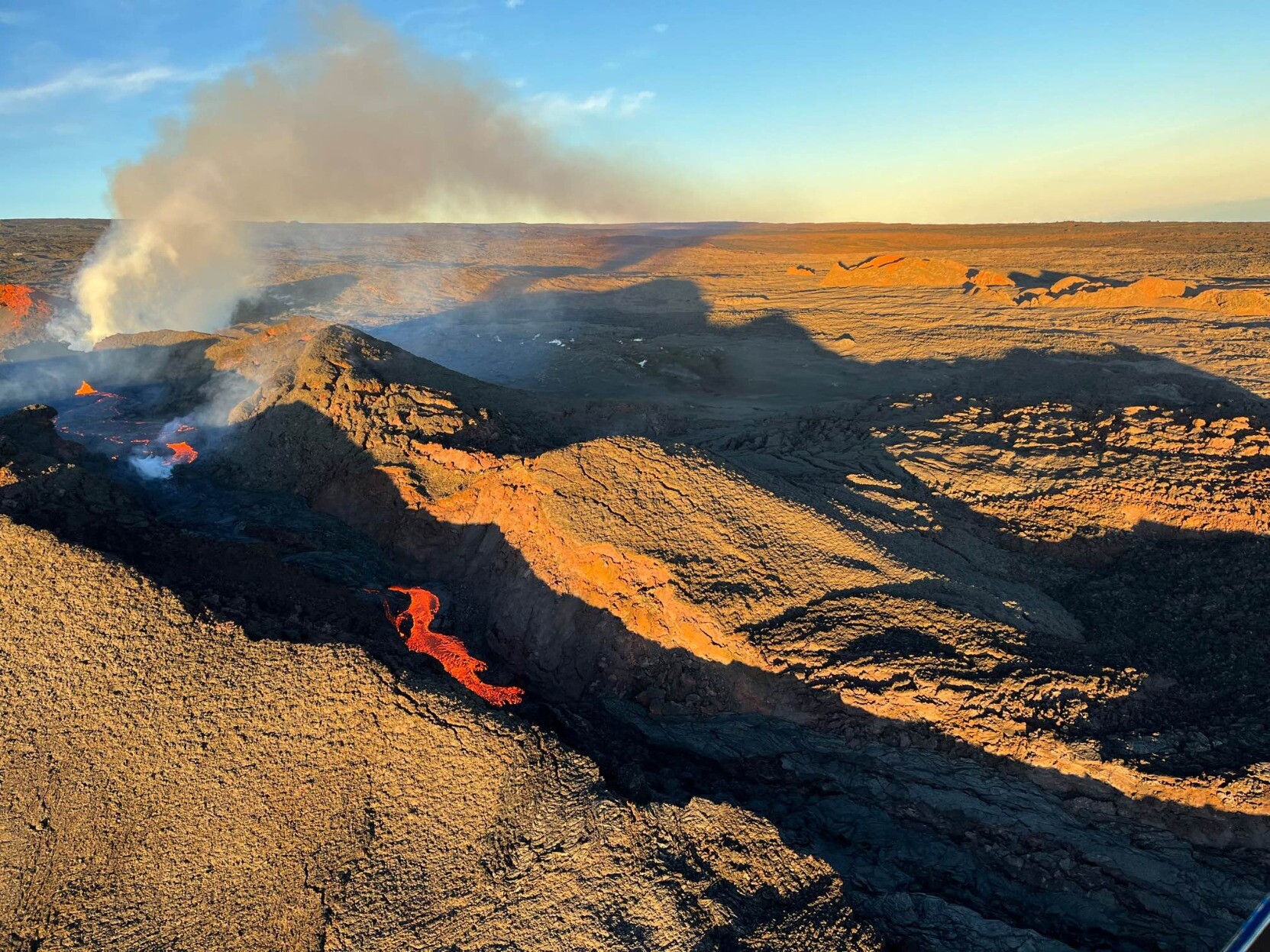 "The closest lava reached is still about 1.7 mi from Saddle Road. The middle part of that flow is still hot and a bit higher in the middle than the edges. It will creep a bit closer as the hot insides push outward as the flow settles. Saddle Road is no longer in imminent danger."