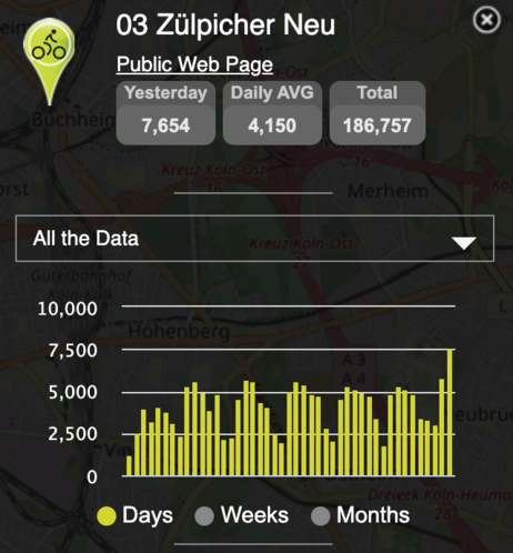 Durch den Streik des Kölner Nahverkehrs gestern hat sich der Radverkehr im Vergleich zur Vorwoche an einigen Stellen (Deutzer Brücke, Venloer Straße, Severinsbrücke) mehr als verdoppelt.