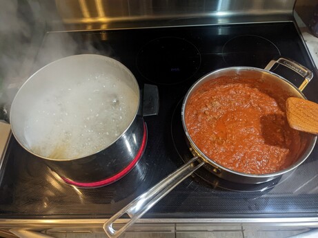 Bolognese style ragu on hot chips. Also I tried Epazote (a Mexican herb that smells like petrol that I've recently fallen in love with), Lemon Myrtle and Pepperleaf in the seasoning for the ragu. It was good.