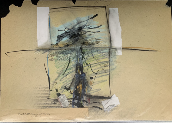 Mixed media reflections on Jean Baudrillard’s America, on butcher paper; speed, perception, emptiness, and desire. #Postmoderism #MediaCriticism #TelevisionCulture