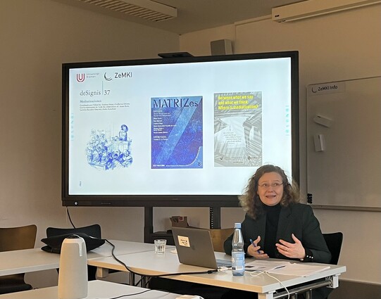 Our third presentation at our @zemki worksop is by Lucrecia Escudero Chauvel, who looks at the concept of the "reading contract," its references to Eco's "lector in fabula," and how we can make it useful for #mediatization research today. One argument is that media are not simulacra, but part of the construction of #reality.
