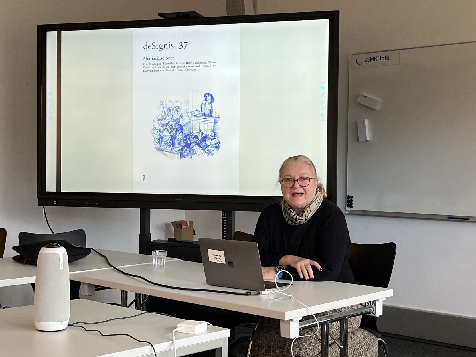 The next presentation in our @zemki workshop on European and Latin-American perspectives on #mediatization: Stefanie Averbeck-Lietz discusses links and differences of the traditions. Her argument: Eliséo #Veron is an important bridge- and he should be better known in European media and communications research. But only little of his work has been translated into English - e.g. in the mediatization handbook edited by Knut Lundby.