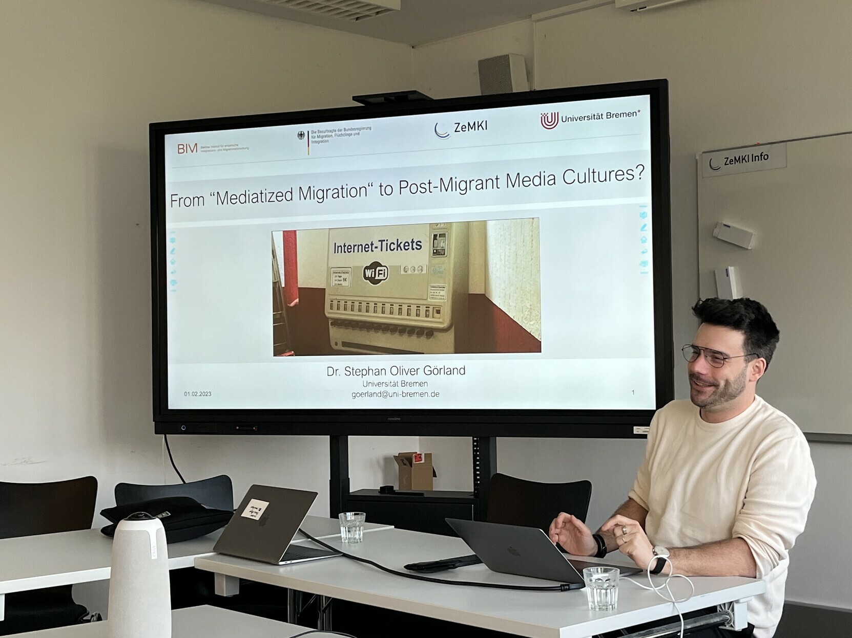 The 6th presentation of the @zemki workshop on "Where is #mediatization research heading?" is by Stephan Görland, who talks about "mediatized #migration". In research there was a "delayed digital turn" - only after 2015 it became a topic how deeply migration is mediatized. Today's migration cannot be understood beyond digital media - when migration is organized with digital media from the beginning researching media and migration is not simply a question of integration through media by more.