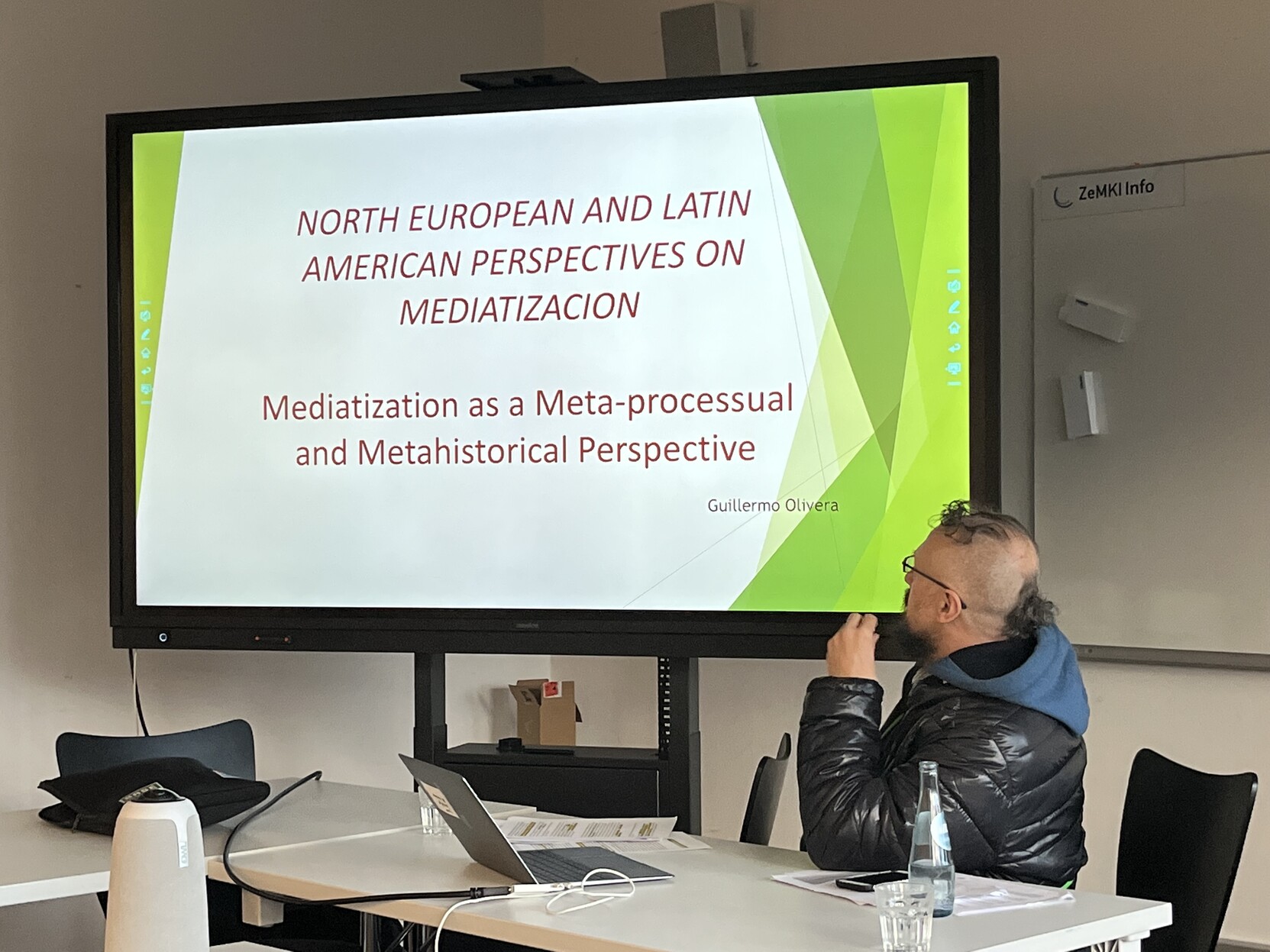 The last presentation at @zemki for today by Guillermo Olivera is about #mediatization and the necessity to grasp the construction of meaning in order to analyze media-related transformations. A link between European and Latin American tradition is to see meaning as relational.
