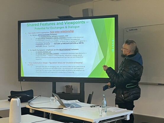 In the second presentation of the @zemki workshop on mediatization, @cscolari compares the European and Latin American traditions of #mediatization research - focusing on #materiality.