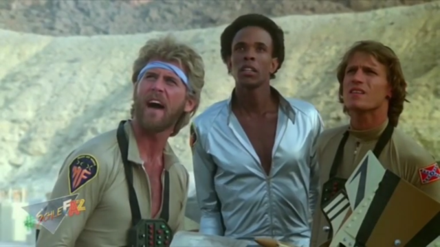 Megaforce. Starring the legendary Barry Bostwick as Ace Hunter. Missles shooting balloons? Check. Fire? Hell Yes! And ALL THE ACTION. I need a goddamn cigarette after the motherfucking action.