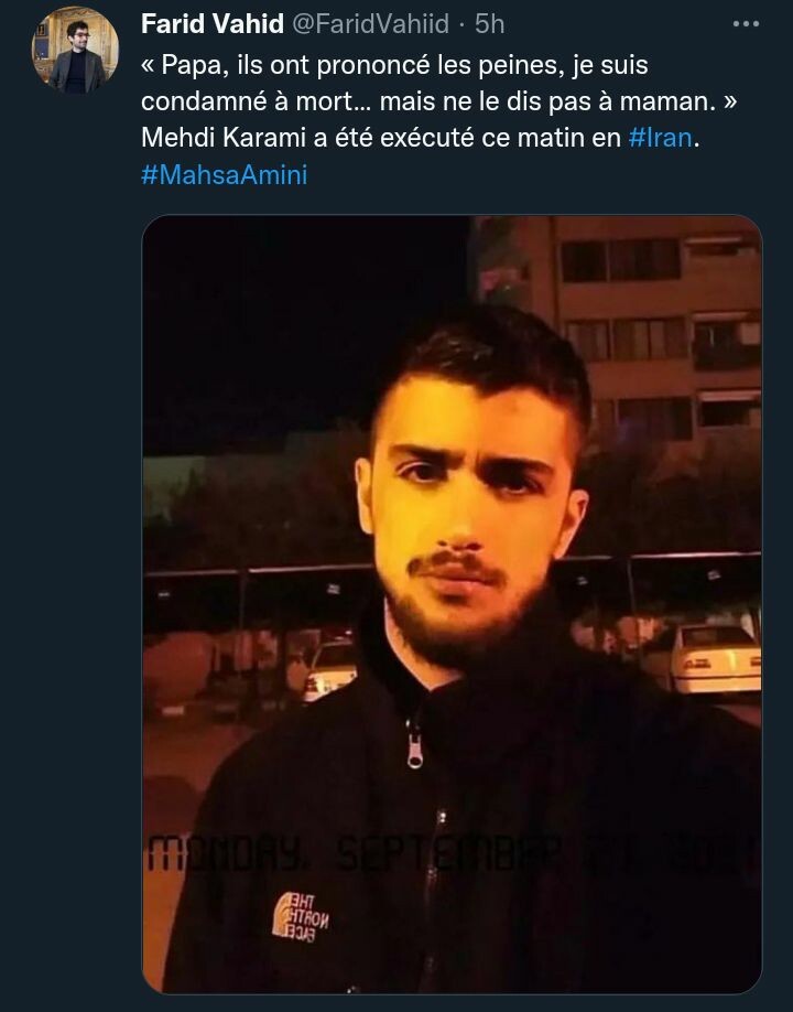 #StopExecutionInIran #MahsaAmini #MehdiKarami https://twitter.com/shekarabi/status/1602927786020245505