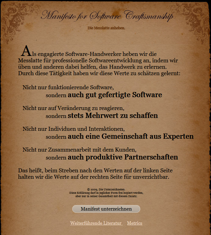We care / We learn / We practice / We share - das beschreibt ganz gut die inner Haltung der Software Crafter.