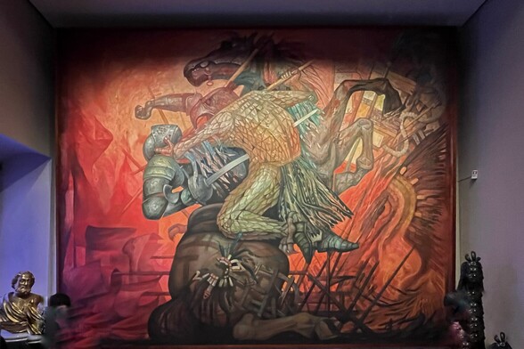 Rigardante la meksikan historion per mur-pentraĵoj... ĉe la Nacia Muzeo pri Historio en #Meksikurbo