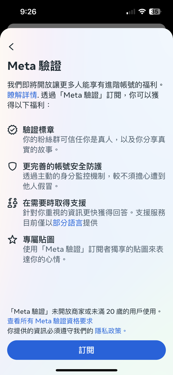 It seems that users in #Taiwan can now start subscribing to #MetaVerified. However, not all #Instagram or #Facebook accounts can subscribe to it...