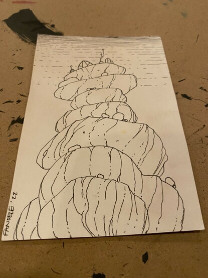 camping on the tower in zone 452 // working on little sketches on ink-stained paper // #scifiart #inksketch #micronpen #comics #sketch #scifi #drawing #camp