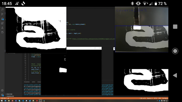 Je dois préparer un logiciel d'arbitrage pour un concours/exam de TP de #microprocesseur. Donc je fais plein de #python et d'#opencv. Le but c'est mesurer la surface couverte par un robot qui simule un robot aspirateur.
