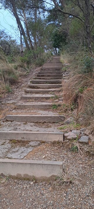 Love these stairs in Wentworth Street, Blackheath. I run up them twenty times every second day. From the top, I walk to the school then run hard to the old bank. Walk/jog home. Just walk and slow jog on other days. 30 to 60 mins each day. Lots of hugs & chats as I puff along.