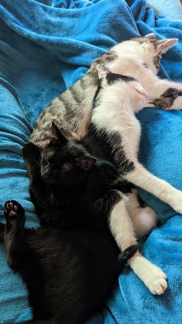 Morgen müssen meine #Mietzies (Nicoletta und Penelope) zur #Kastration und es ist das erste mal seit ich sie habe, das ich sie weg geben muss. Evtl sogar über Nacht. Und irgendwie bin ich #emotional dafür gerade nicht gemacht. Chilli (schwarz), als Hahn im Korb, hat zu meinem #egoismus Glück noch ein bisschen Zeit, also bin ich nicht ganz ohne #Schnurreinheit.