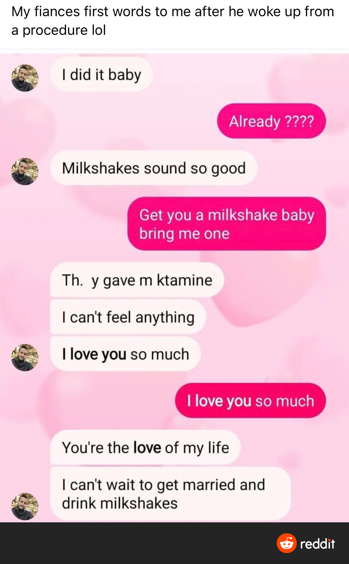 Sent this to my spouse who told me that they didn't need ketamine to love me. Milkshakes still a real possibility. #relationshipgoals #ketamine #milkshakes