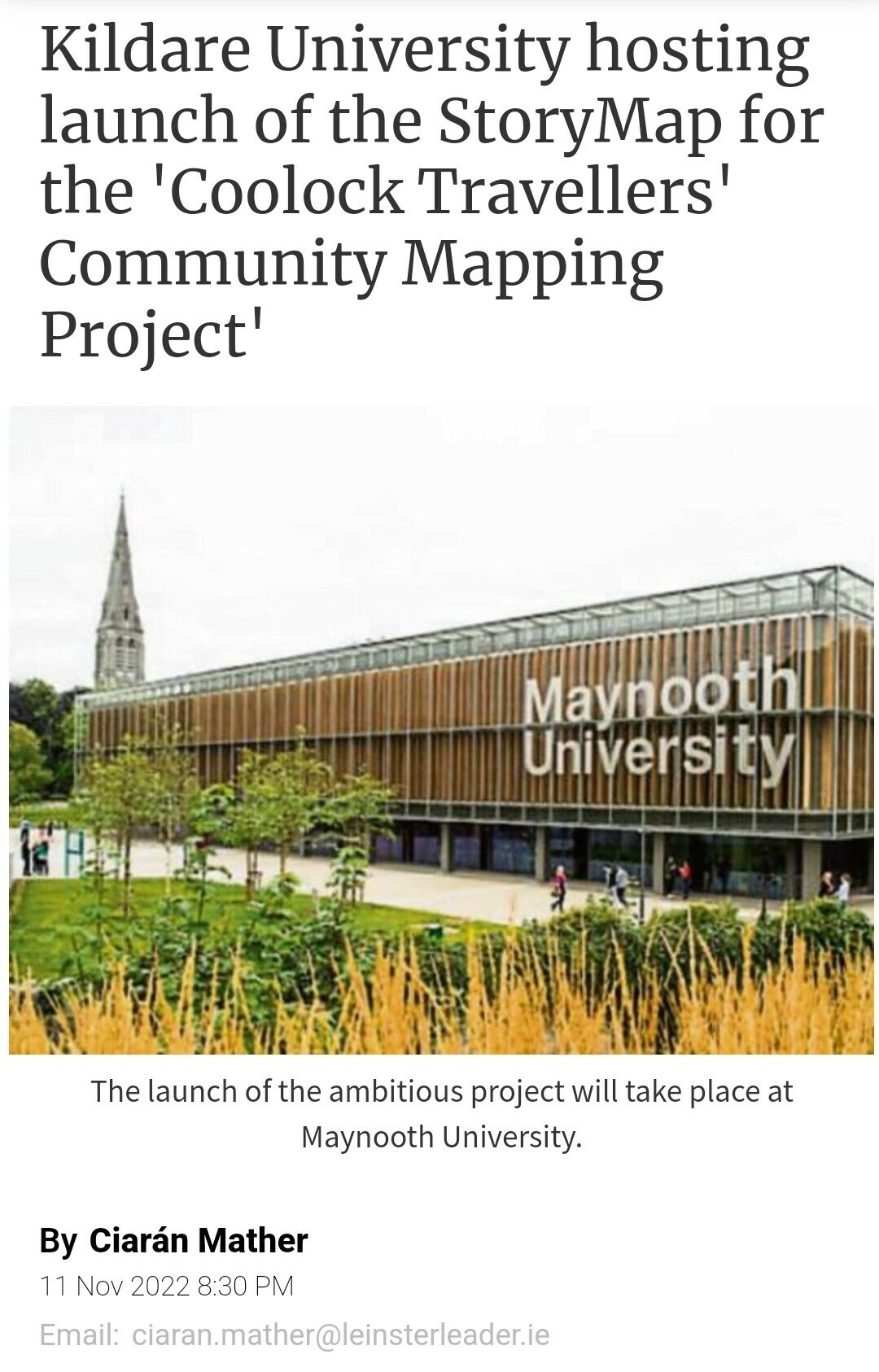 #Kildare University hosting launch of the StoryMap for the 'Coolock Travellers' Community Mapping Project'