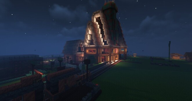 The Daxico iron mill from Season 1 of Minecraft Stories. My favorite part was the iron farm inside would shoot the iron up the water tower and into the wagon below for storage.