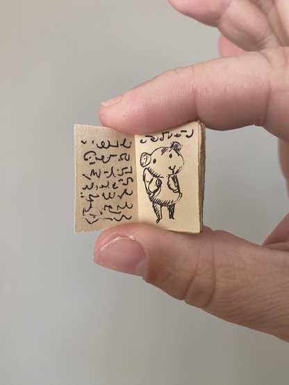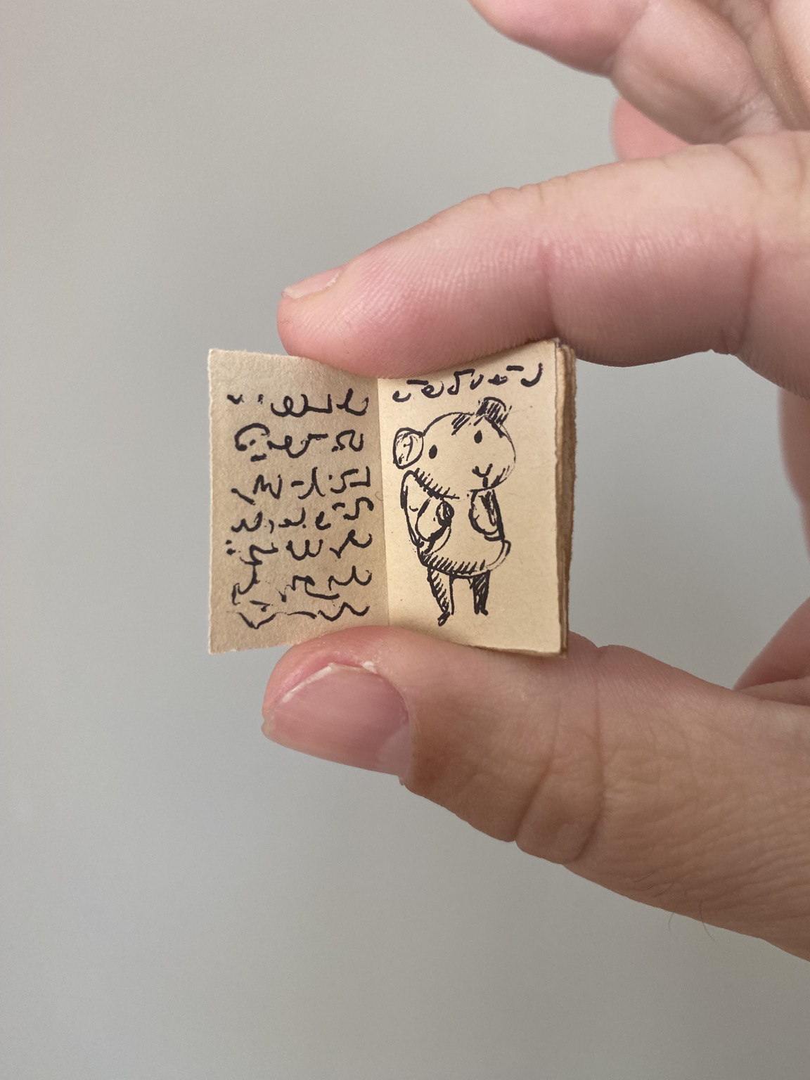 Retomando los libros en miniatura ilustrados por @unanara_art. Aquí tenéis uno escrito en Ratolino. Que es la lengua de los ratones de biblioteca. #miniaturebook #libros #librosenminiatura #ratones #mice #book