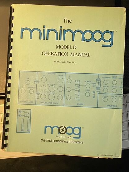 Got a new manual for my Minimoog, after a billion years of my original one being who knows where. Not that I need it any more of course, but it's where I learned the basics of how to work a synthesizer back around 1980 or so.
