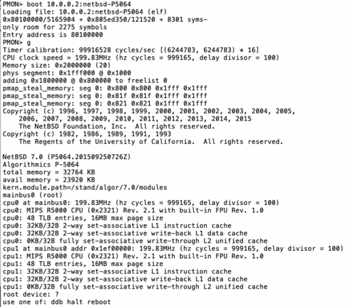 Like the next68k port of #netbsd, which stopped working after 5.2.3 due to a number of regressions (will be fixed in 10.0), the algor (Algorithmics #mips R5064 board) port suffered significantly from bitrot. Kernel 5.0.2 works, everything after 7.0 is definitely problematic – 7.0 even detects two CPUs (there's only one R5k on the board, I checked!), but no peripherals... #retrocomputing