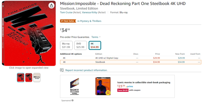 I pre-ordered this bad boy; I don't have any of the #MissionImpossible movies and I rarely get franchises out of order, but #MissionImpossibleDeadReckoningPartOne is a masterpiece so it's worth it