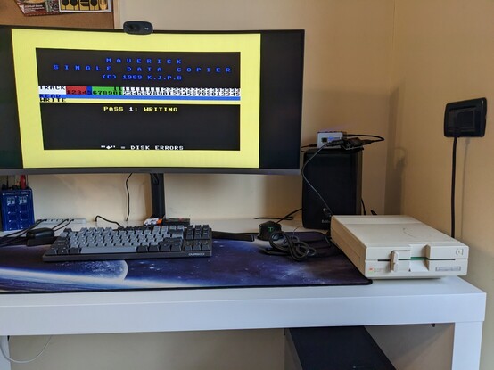 Si può quindi scrivere su floppy fisico un'immagine d64 o viceversa, backuppare un floppy fisico si un'immagine d64.