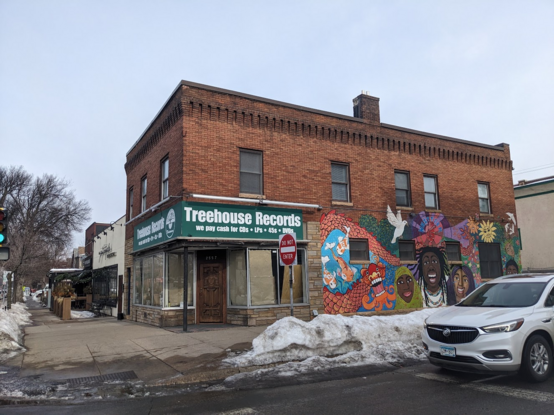 Treehouse Records mural (painted 2017 by Melodee Strong, MCAD, and Whittier community)