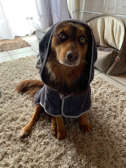 #lebenmithund #felltroten #dogsoftroetcafe #Mastodonrudel #aussie #bobtownrocky #doggo #dogsoffediverse #australianlabradoodel #australianshepherd #dogsofmastodon #twitterrudel #wrap #modelhund