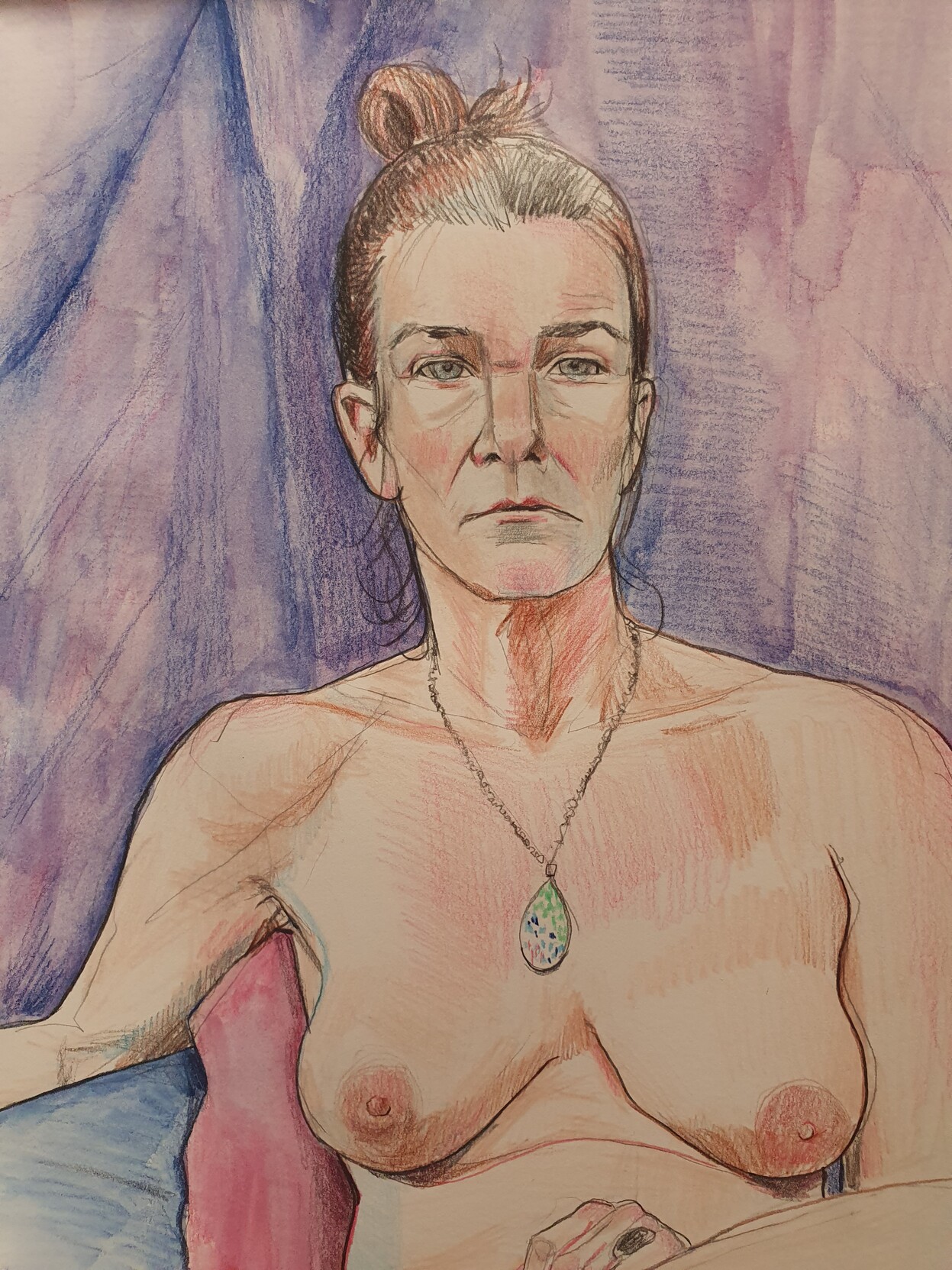 Vanavond weer eens naar #modeltekenen. Het is 3 uur, maar meestal hou ik het max 1,5 uur vol zo in de avond. Maar dat geeft ook een leuke extra tijdsdruk. #Aquarelpotlood en water, A4.
