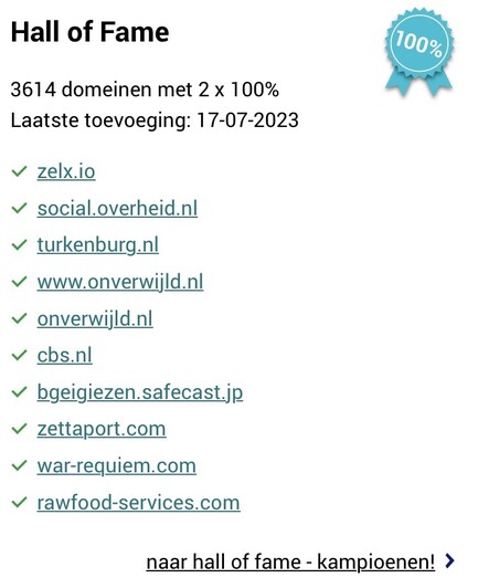Meanwhile, the HoF contains 46 hosters who enable their customers to score 100% in both the Internet.nl website and e-mail test.