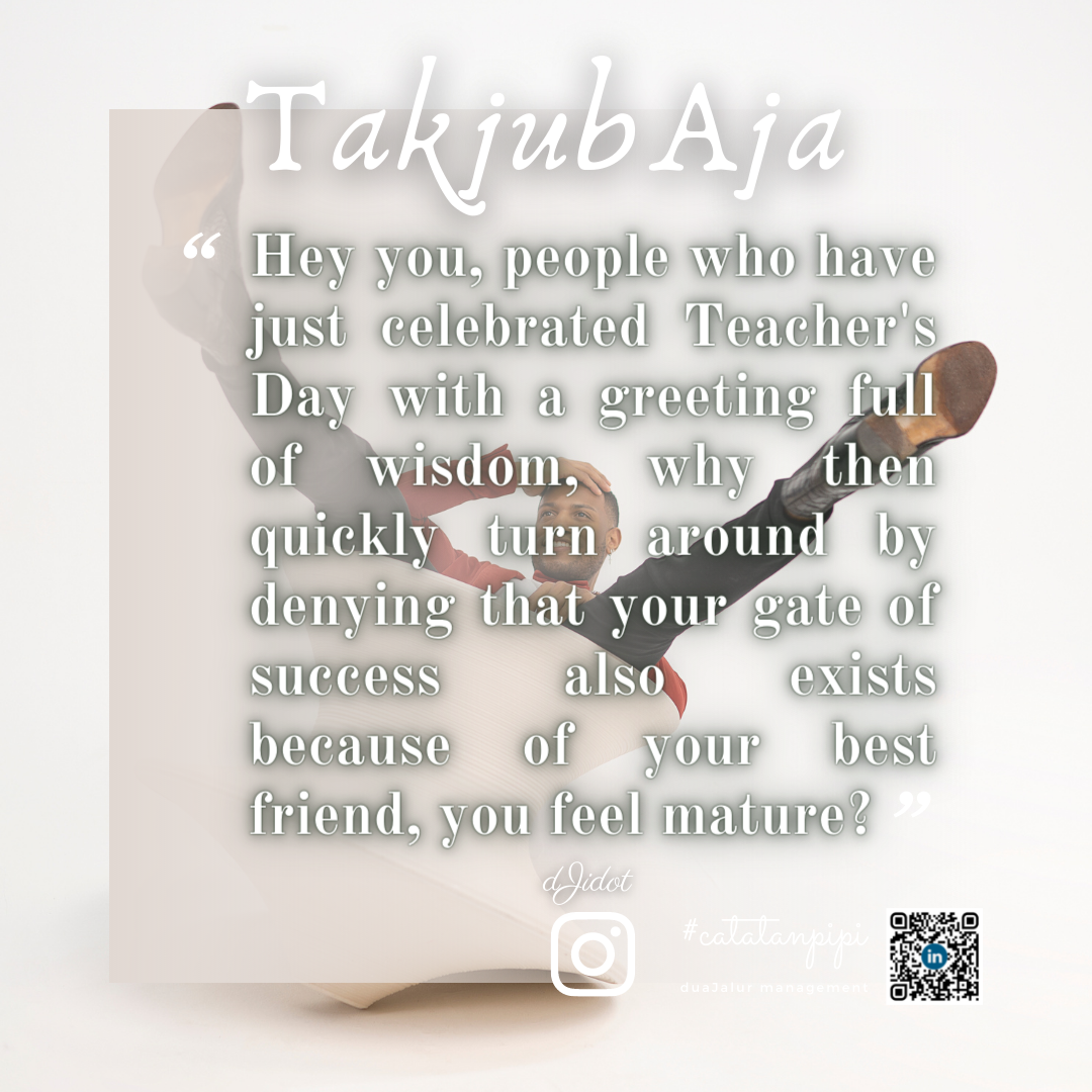 #takjubaja , Hi you, people who have just celebrated Teacher's Day with a greeting full of wisdom, why then quickly turn around by denying that your gate of success also exists because of your best friend, you feel mature?