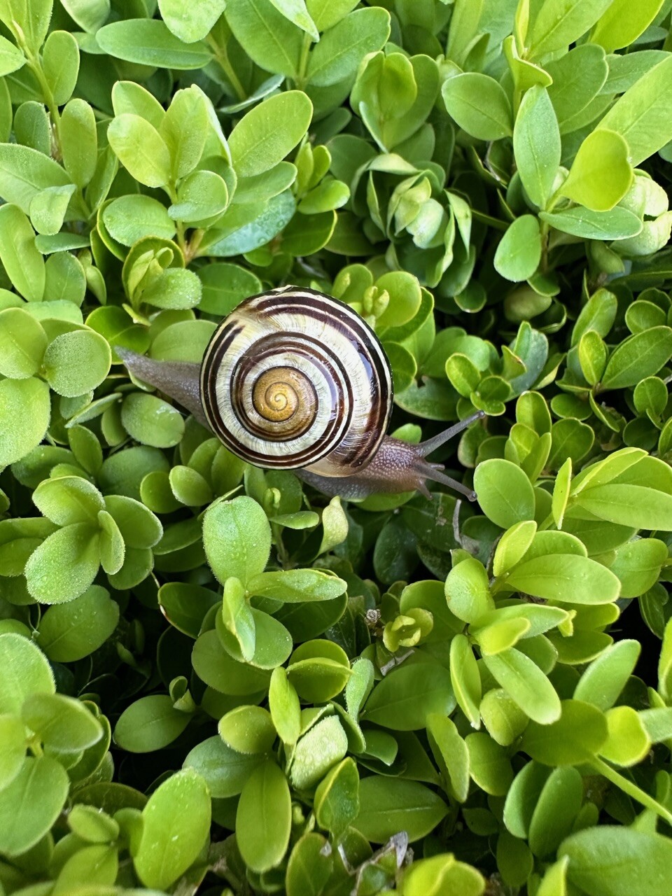 Two snails hanging out on the boxwood hedge. It’s the only place I routinely find them. :blobcatshrug: