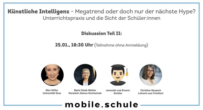 Was denken eigentlich Schüler:innen über ChatGPT? Wir erfahren es in Teil 2 unserer Diskussionsrunde zu KI/ ChatGPT am 25.01., 18:30 Uhr.