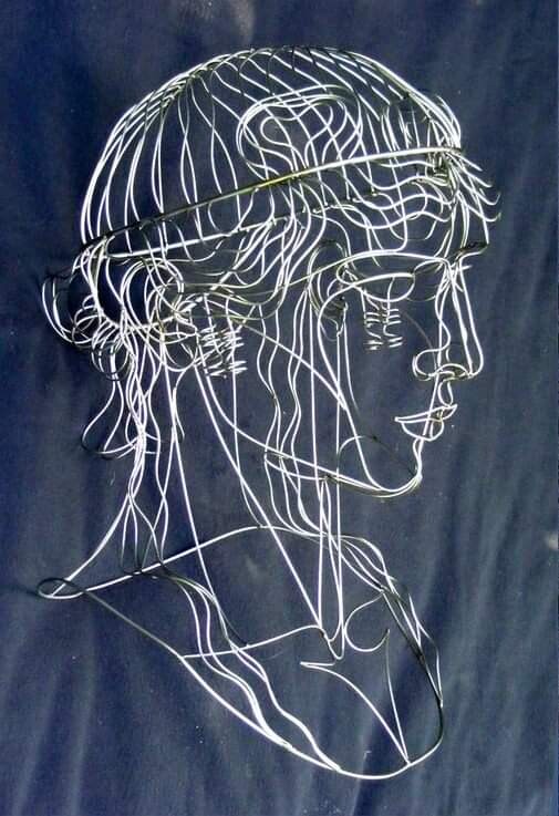 🪷 Antinous Mondragone​ wire sculpture by artist #MartinDebenham, who says: "I made this by hand-bending 2mm stainless steel wire. This was one of the first wire heads I made, it's based on an old Roman sculpture, the #Antinous #Mondragone." 🪷