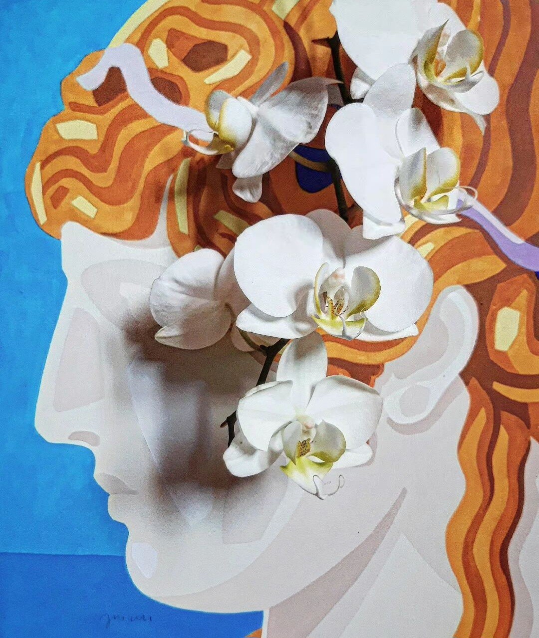🪷 #Antinous #Mondragone with #Phalaenopsis #orchids. Acrylic on canvas 45x35 cm by Tuscany-based artist Andrea Mattiello via Instagram: https://instagram.com/mattielloandrea. More: https://andreamattiello.blogspot.com/ 🪷