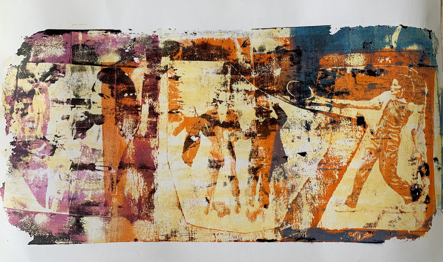 Dropping in some #art , one of my #monoprints which I think is an apt first image. #twittermigrant