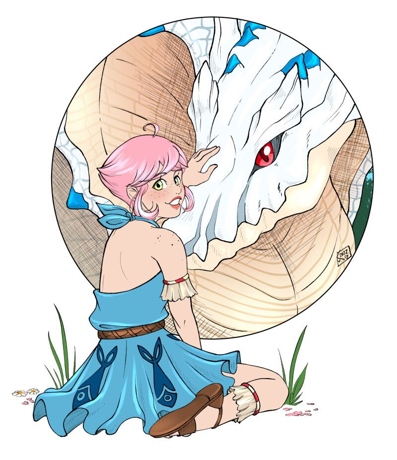 Here's Kitkat's bio pic! I needed one for her to match the one I made for Katts. Because Kitkat is my Monster Hunter Stories 2 OC I also had to add her main monstie Poundcake, an Ivory Lagiacrus. Kitkat is a sweet, kinda dumb, ball of sunshine.