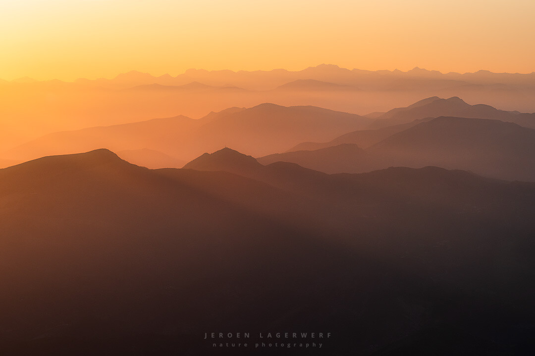 This picture "Nuance" was shot from the Mont Ventoux top after a night of astro-scaping. See my profile header photo. It shows the hills of the Provence and the great Alps on the back, where the sun rises.