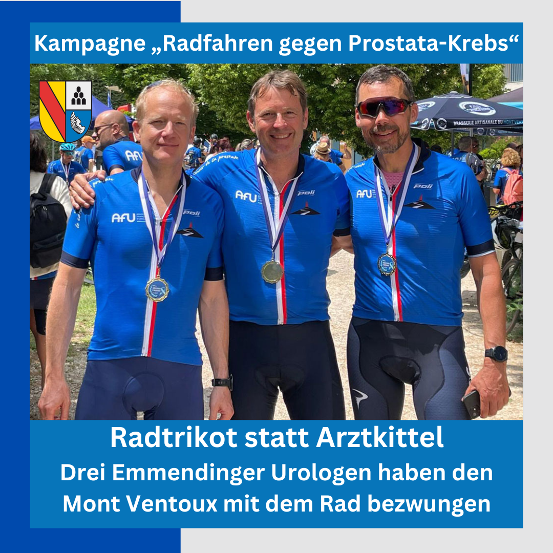Bei der diesjährigen #tourdefrance stand der #montventoux ausnahmsweise mal nicht auf dem Programm, dafür haben ihn aber die drei Emmendinger Urologen Dr. Michael Meininger, Dr. Stefan Carl und Dr. Johannes Andreas (Foto von links) mit dem Rad bezwungen. Für einen guten Zweck. Das sportliche Trio behandelt als Belegärzte in der Urologischen Abteilung des #KreiskrankenhausEmmendingen jährlich rund 600 Patienten.