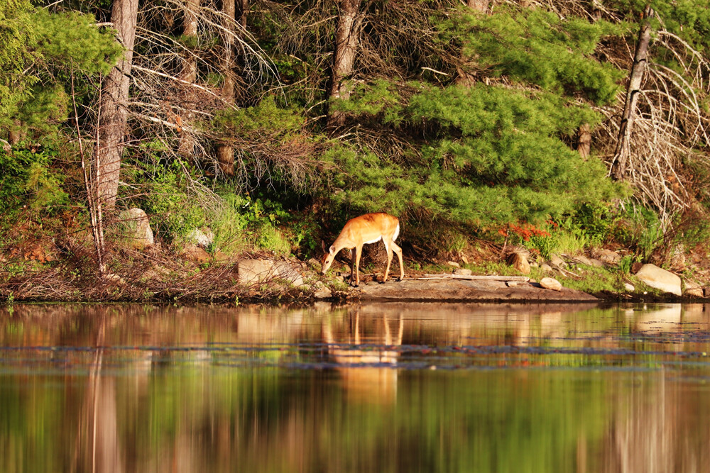 We were out in the boat on the Moon River Ontario, just before sunset, when this lovely Deer stopped for a drink along the shore!