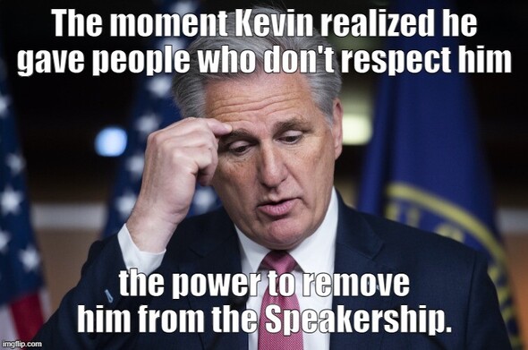 So now that it appears that #mccarty will eventually become #SpeakerOfTheHouse we need a poll on how long before the right wing nuts issue a call for a "Motion to Vacate" --- 3 weeks max!
