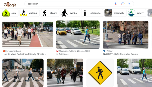 Similarly, compare "pedestrian" with "person walking". A pedestrian is always shown in situations where they will interact with, slow down and otherwise inconvenience people driving.