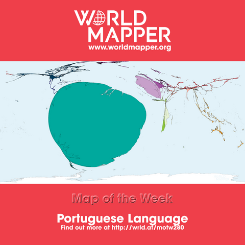 Map of the Week: Portuguese Language - find out more at http://wrld.at/motw280 #maps #cartograms #cartography #worldmapper #motw #portugal #portugese #language #speakers #speaking #mothertongue