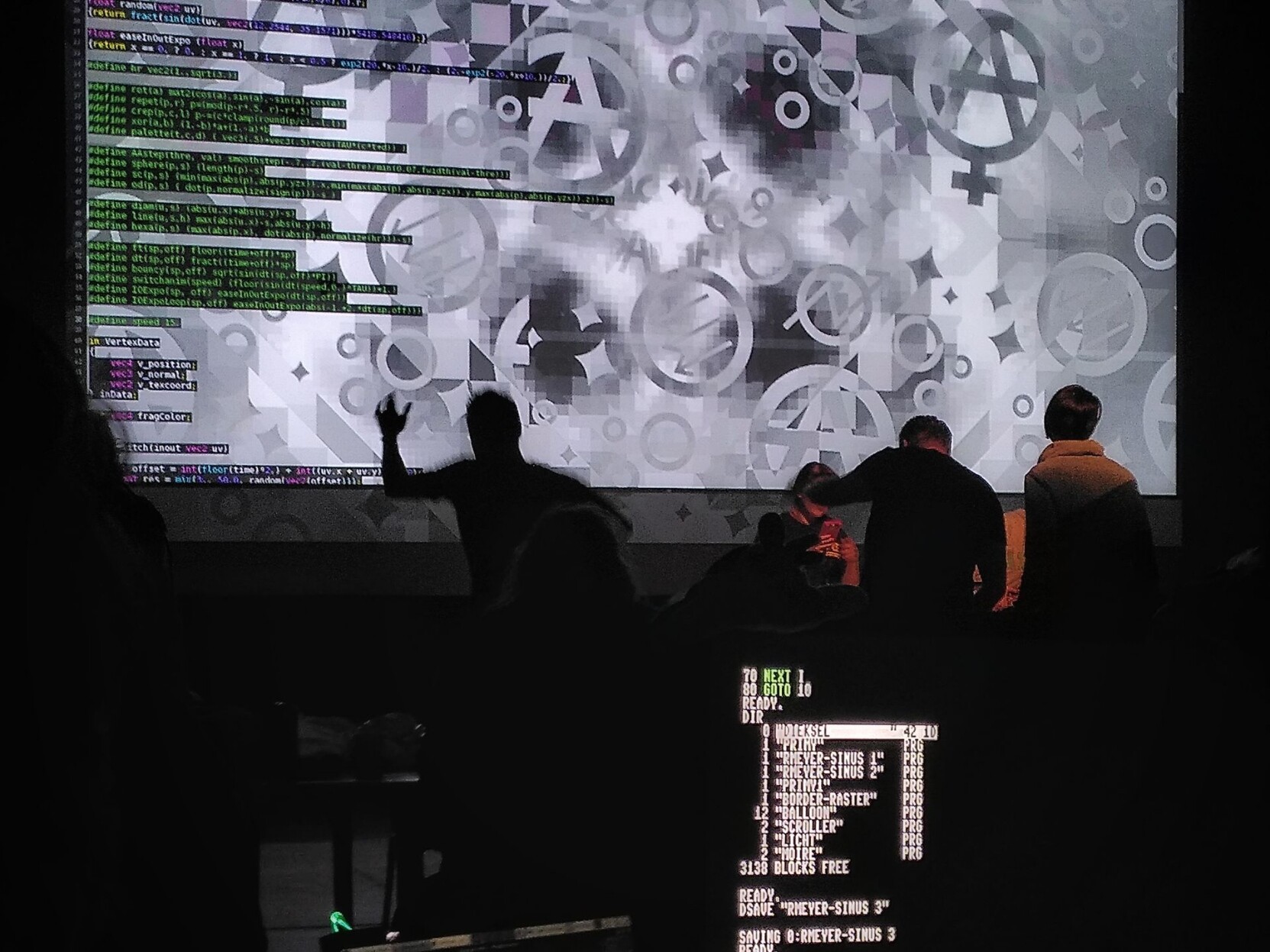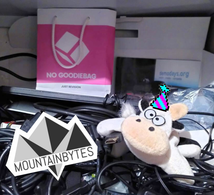 About to start the compos at #MountainBytes with the first an OHP entry created by 🐮 Cowee! The inimitable @unlock presents our first contestants this evening. Stream us at @demonights