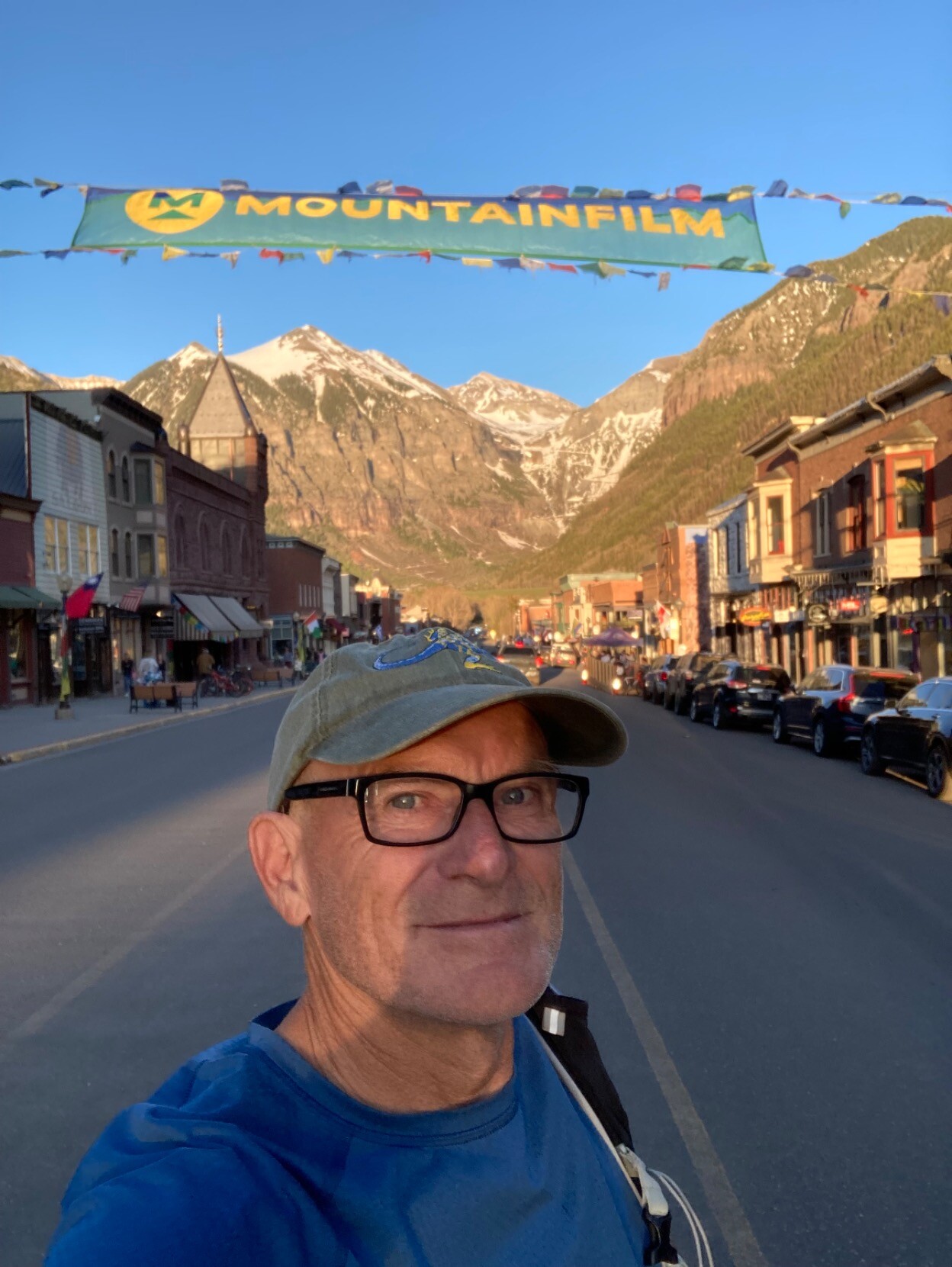 Oblig selfie in front of the #Mountainfilm banner.