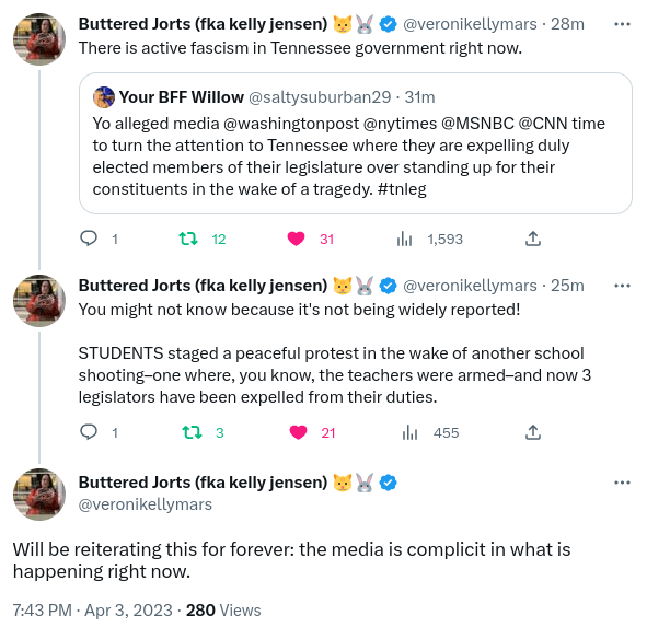 As the media followed tRump from the airport to NYC, the Tennessee legislature divested Democratic state representatives not just of their committee assignments, but from the seats.